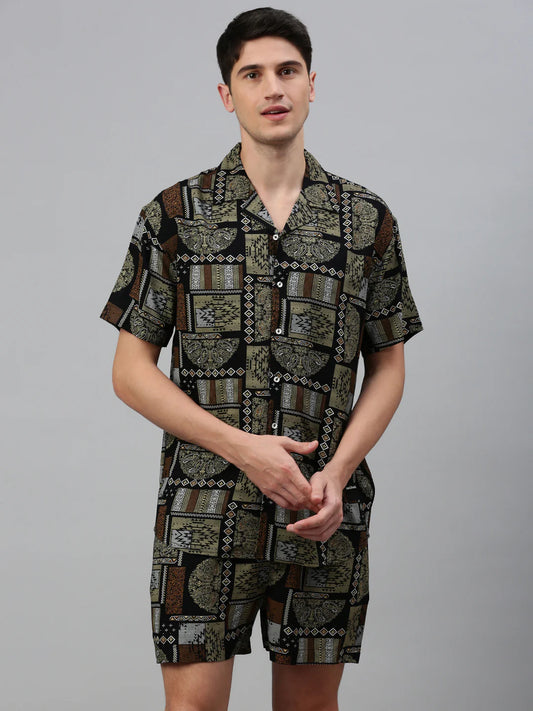 Necked Printed Regular Fit Co-Ords For Men’s