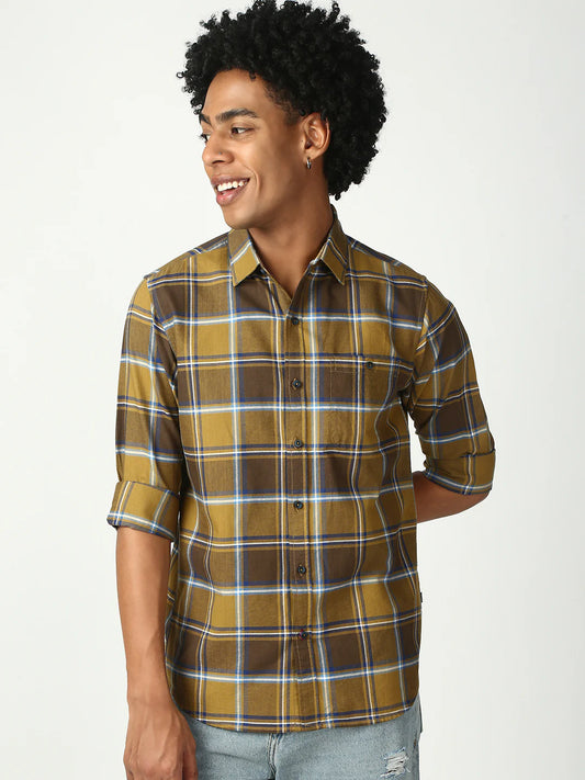 Necked Checks Full Sleeve Slim Shirt With Pocket