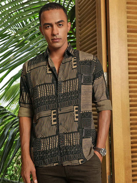 Men's Abstract Printed Satin Finish Shirt – Full Sleeve | Slim Fit