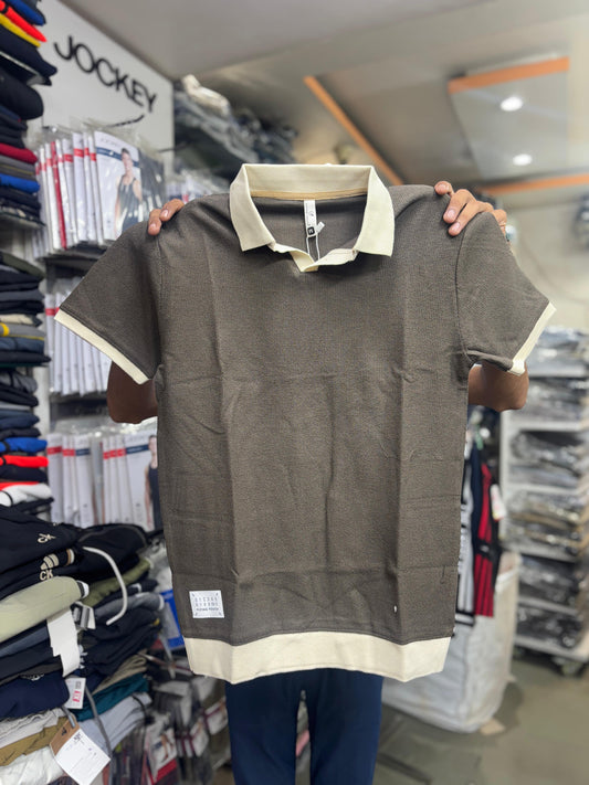 Premium Contrast Collar Polo T-Shirts for Men – Stylish Casual Wear Available in Black, Green & Brown
