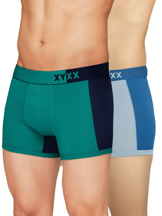 XYXX Men's Dualist Micromodal Regular Fit Colorblock Antimicrobial Trunk with No Marks Waistband (Pack of 2)