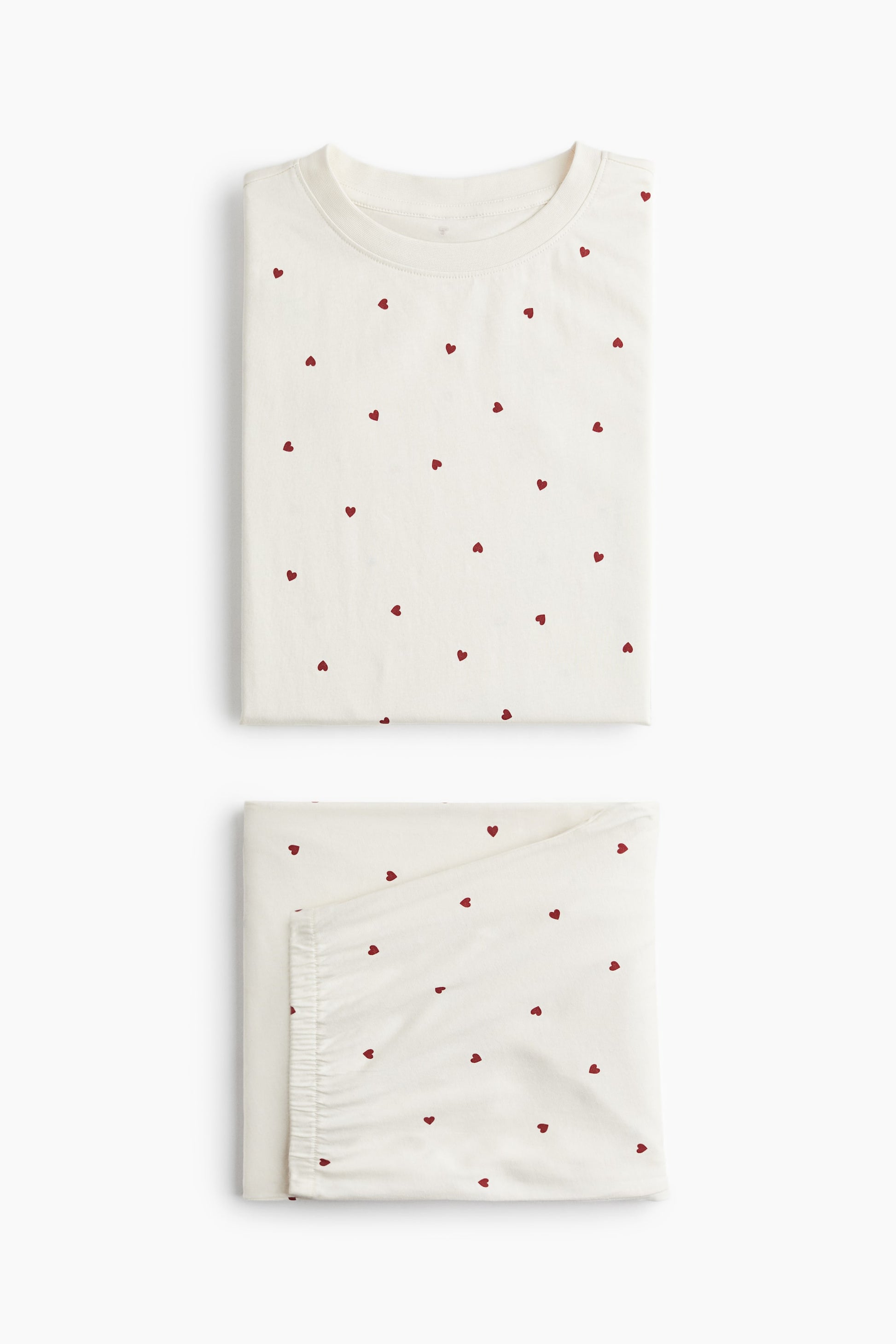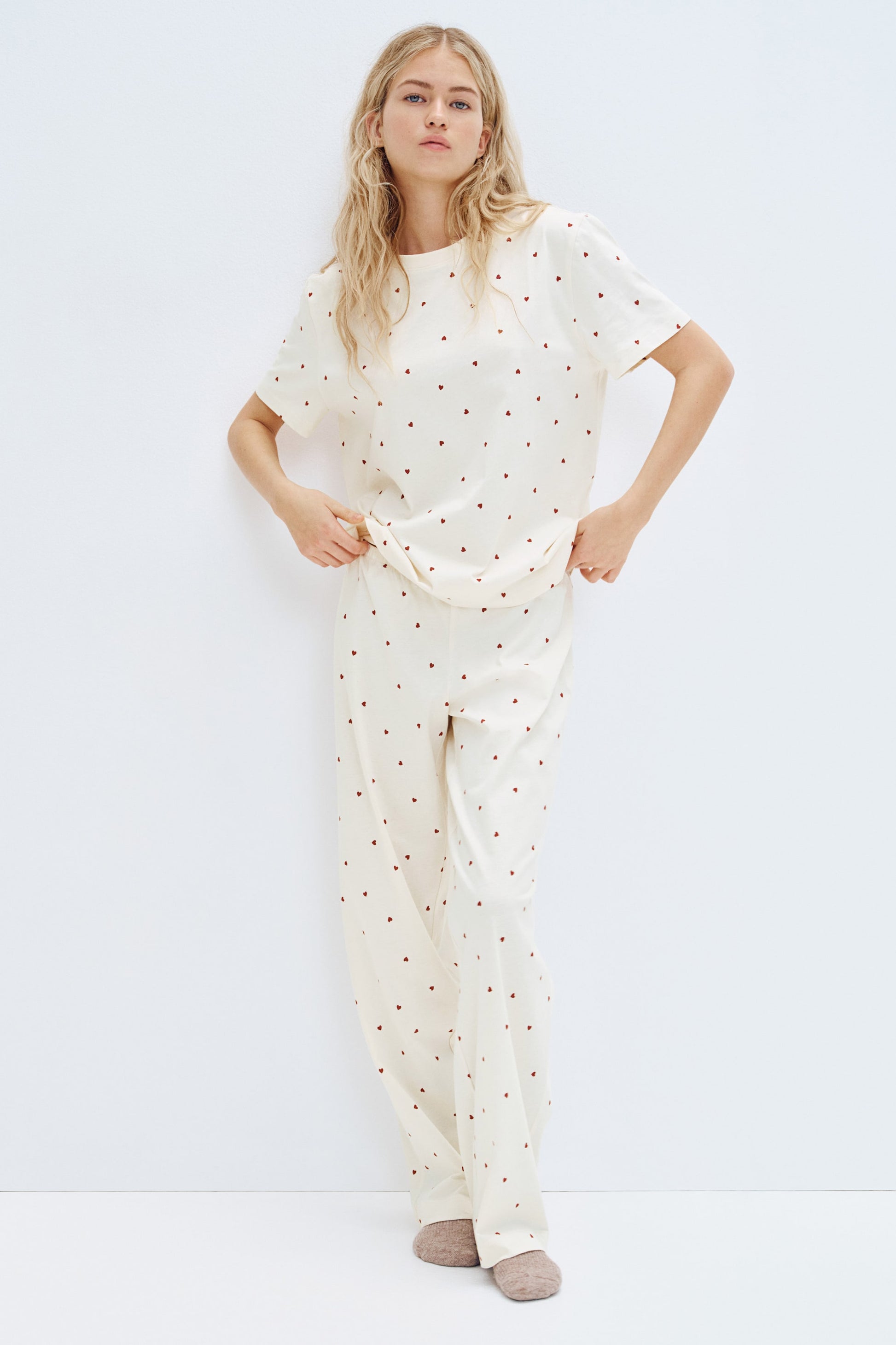 Pyjamas in patterned jersey made from a cotton blend. Top in a relaxed fit with dropped shoulders, short sleeves, and slits in the sides of the hem. Bottoms with covered elastication at the waist and cuffed hems.