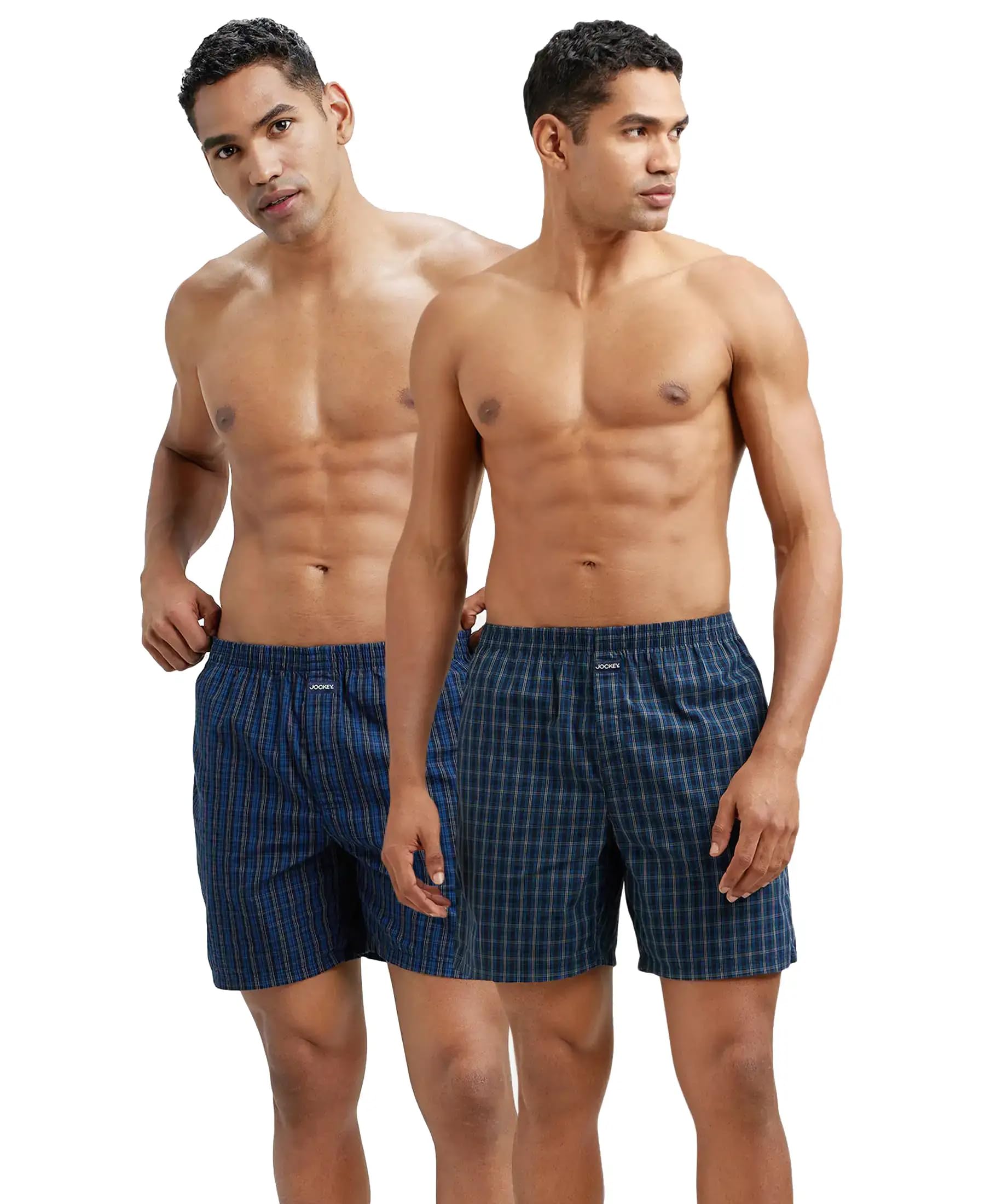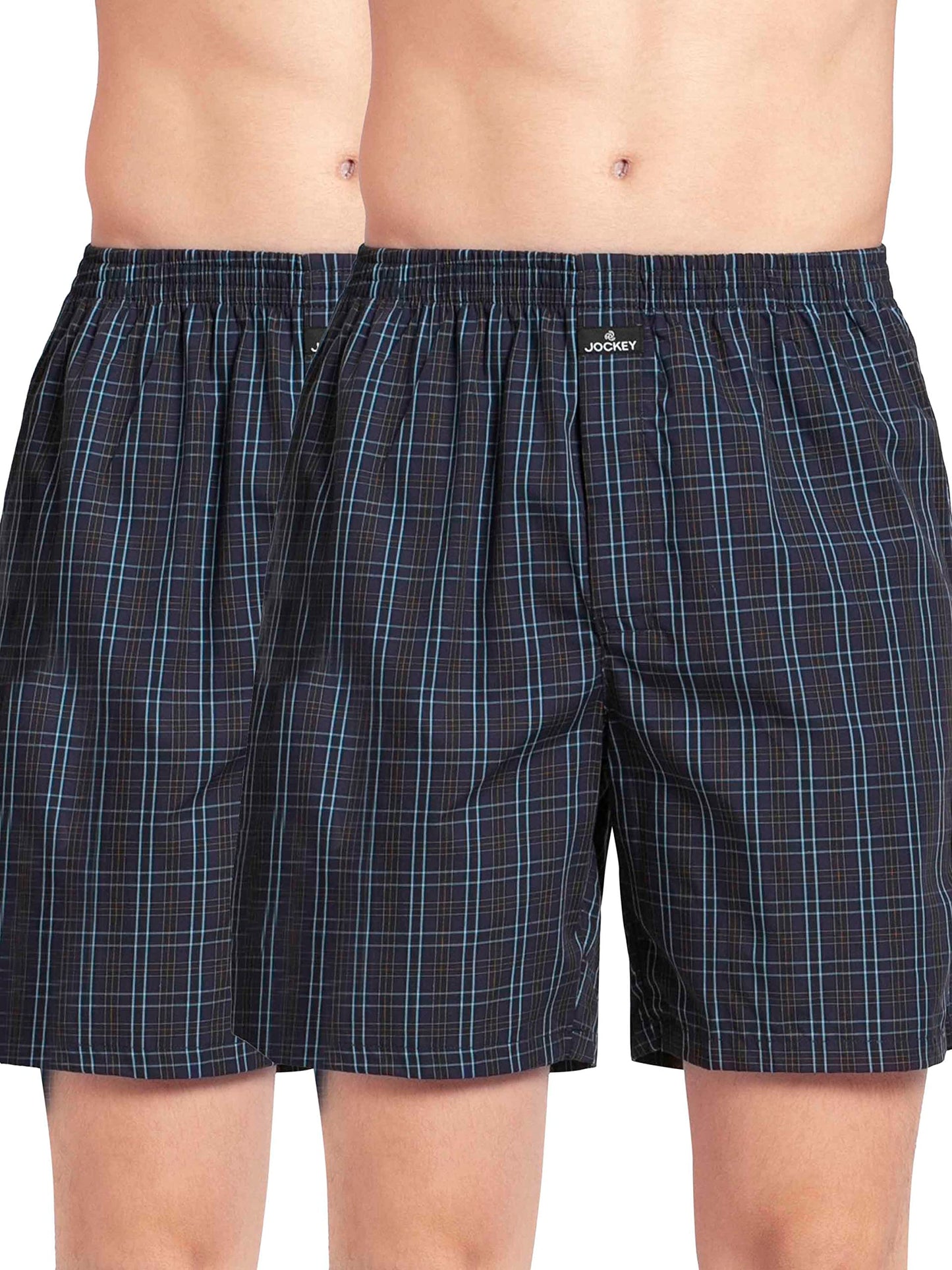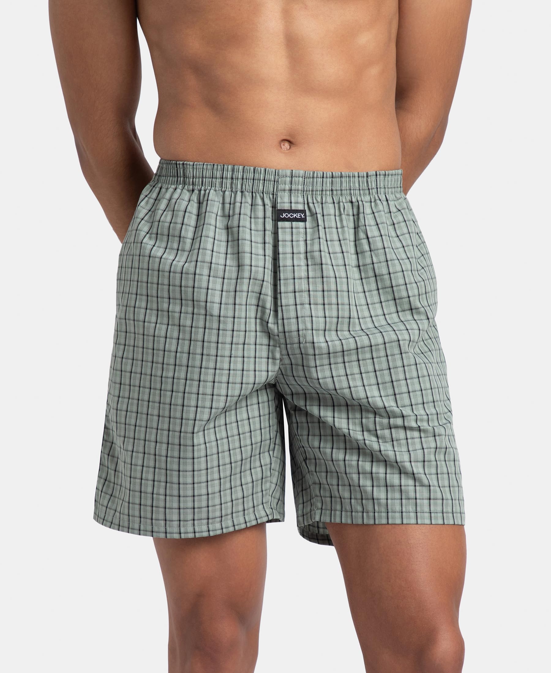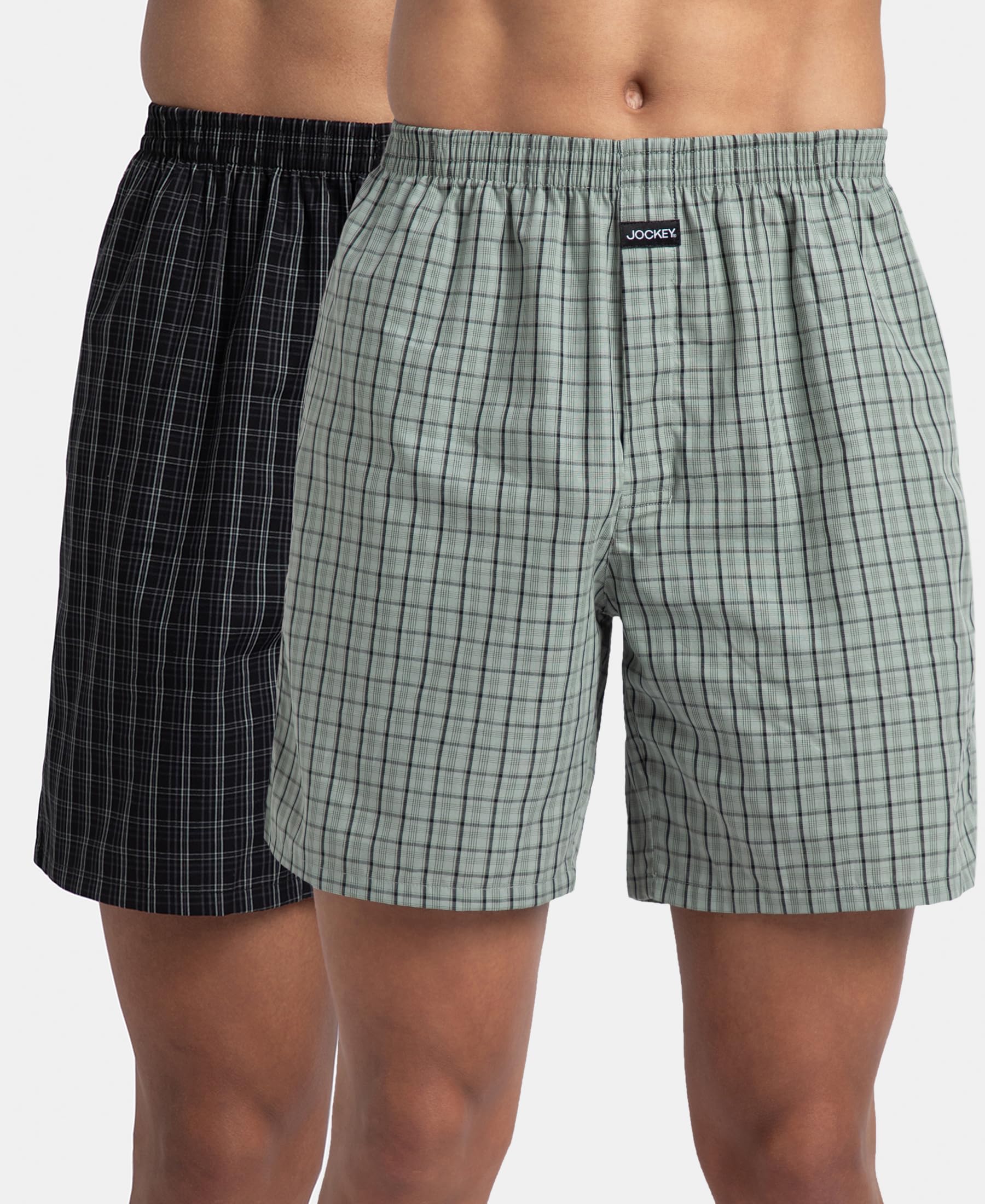 Jockey 1223 Men's Super Combed Mercerized Cotton Woven Checkered Boxer Shorts with Side Pocket (Pack of 2)