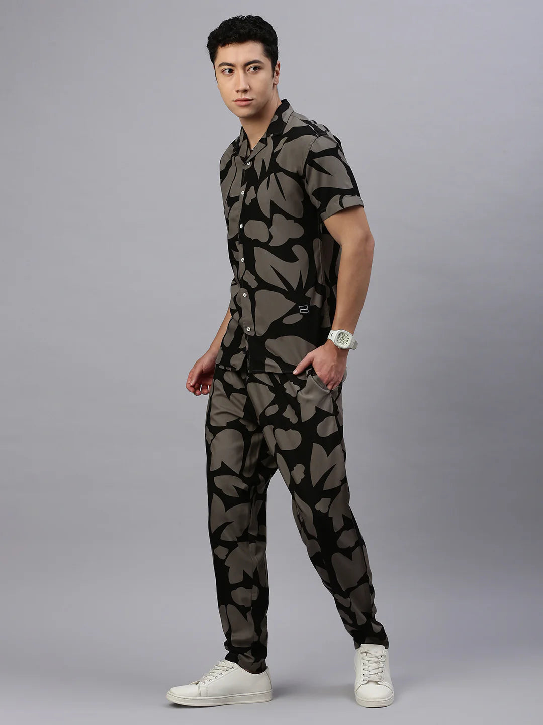 Necked Printed Full Sleeve Shirt Without Pocket