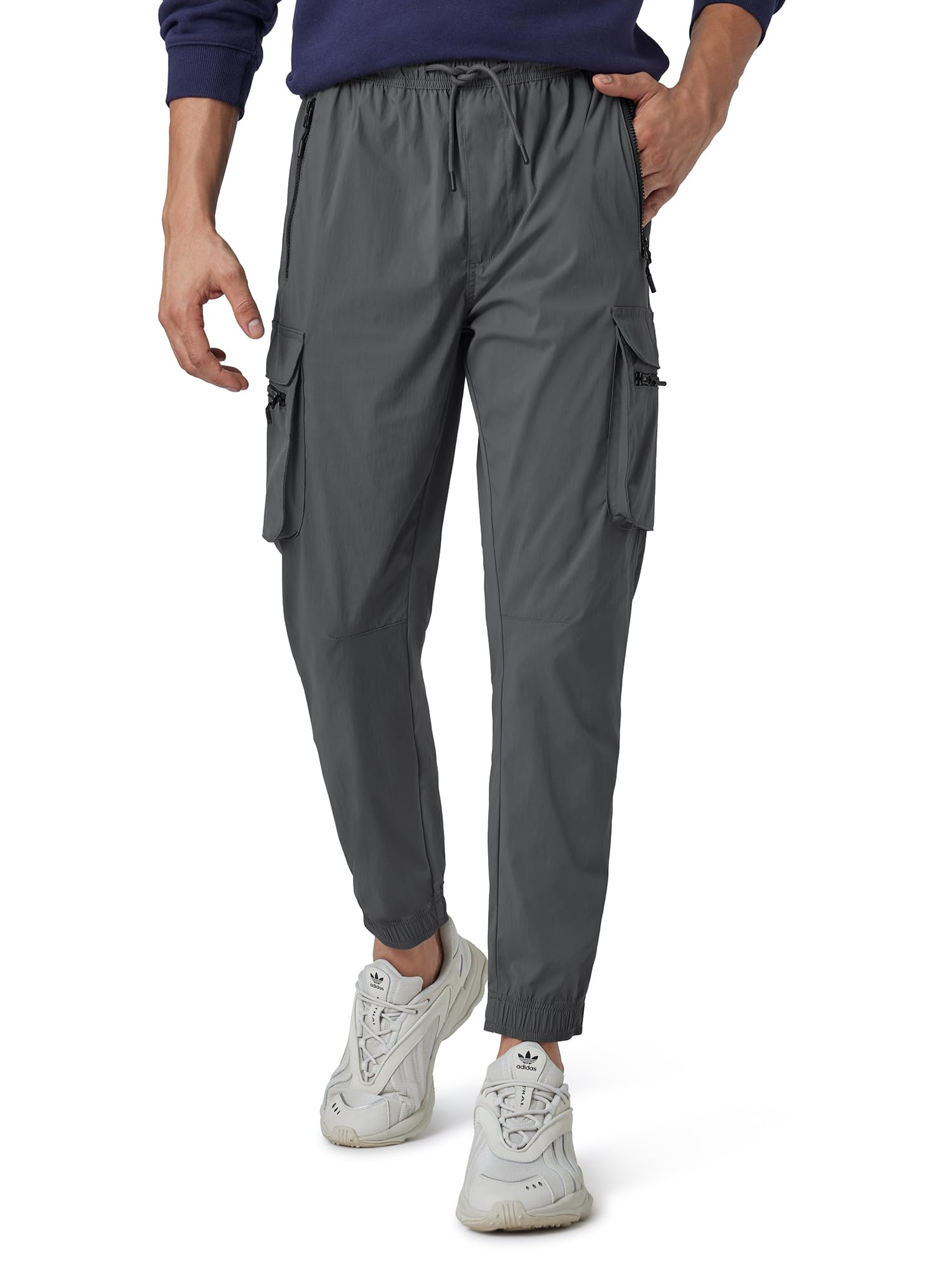 XYXX Men's Skinny Fit Mid Rise Moveo Quick-Dry Cargo Joggers with Drawcord & Utility Pockets