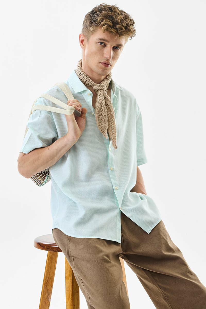 Pastel Mint Casual Half-Sleeve Shirt – Summer Breeze Edition